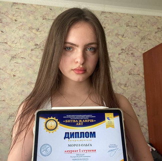 у категорії «Сучасне мистецтво. Молодь» – Ольга Мороз, студентка 41-ОМ групи (картина «Конотопська відьма»); наставниця – Надія Підгорна, викладач-методист, викладач кафедри мистецьких дисциплін;